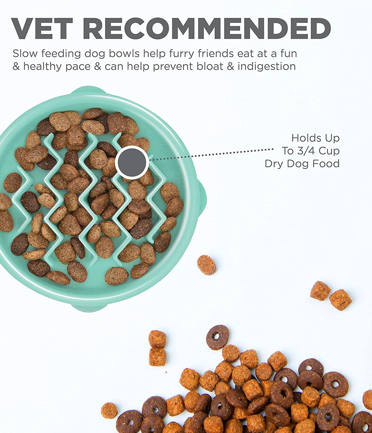 Your dog will love maneuvering their mouth over these playful patterns and will digest their food at a healthier pace. Holds up to 3/4 cup of food.